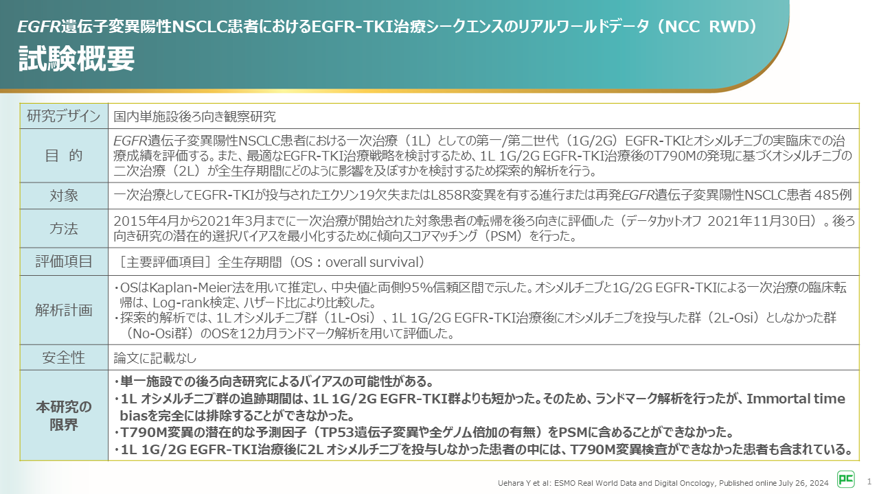 - Uehara Y et al: ESMO Real World Data and Digital Oncology, Published online July 26, 2024