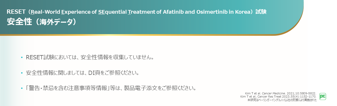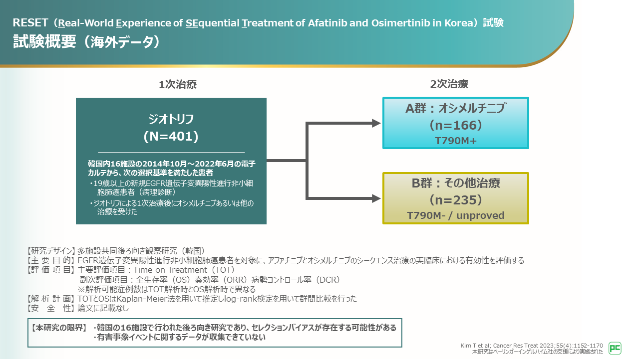 ジオトリフによるシークエンス治療を検討したRESET (Real-World Experience of SEquential Treatment of Afatinib and Osimertinib in Korea) 試験3)