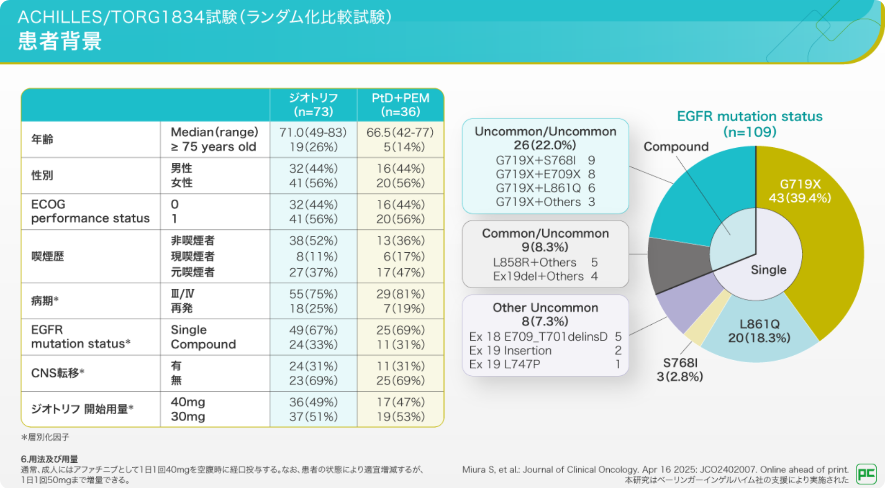 実臨床との乖離はあると感じています。実際に、ランダム化比較試験であるACHILLES試験7)の実施にあたっては、ジオトリフに感受性がある全てのUncommonおよびCompound mutationを対象としましたが、目標症例数に到達するのに予想以上の時間がかかりました。