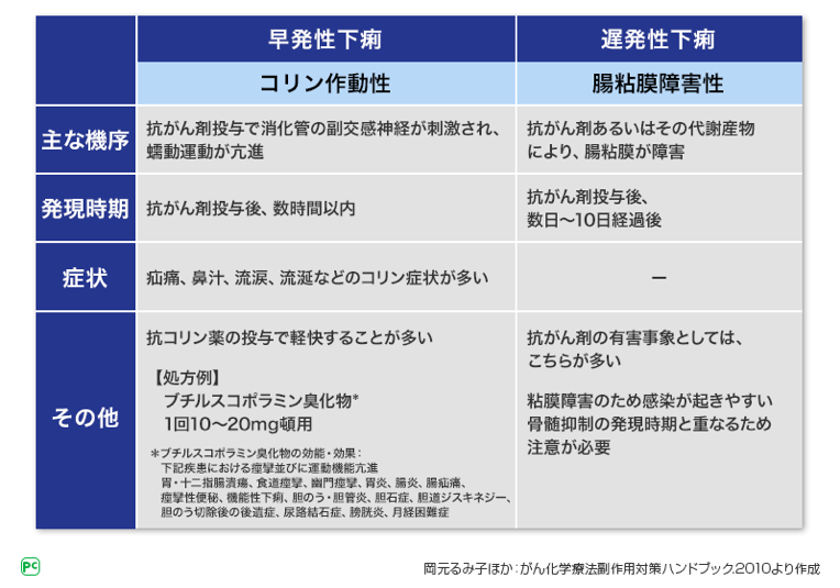 表1 殺細胞性抗がん剤による下痢の分類