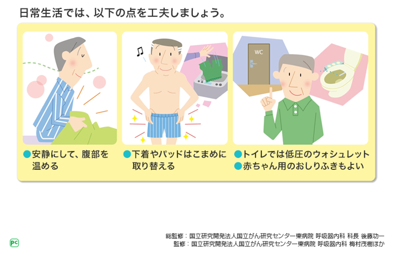 下痢の際には、安静と清潔をこころがけることが求められます。また、下痢は心身に負担のかかる症状であるため、脱水や体内の電解質バランス、食事回数や1回の食事量に注意しながら、消化のよい食べ物で必要なエネルギーをとり、体力を保つことを伝えることが大切です。
