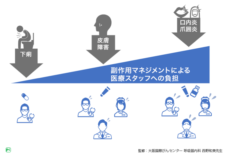 重度の下痢発現を防ぐためには、早期からの適切な対処が求められます。