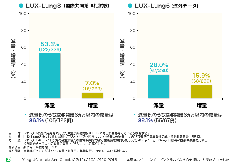 ジオトリフの減量はLUX-Lung3で53.3%、LUX-Lung6で28.0%でした。