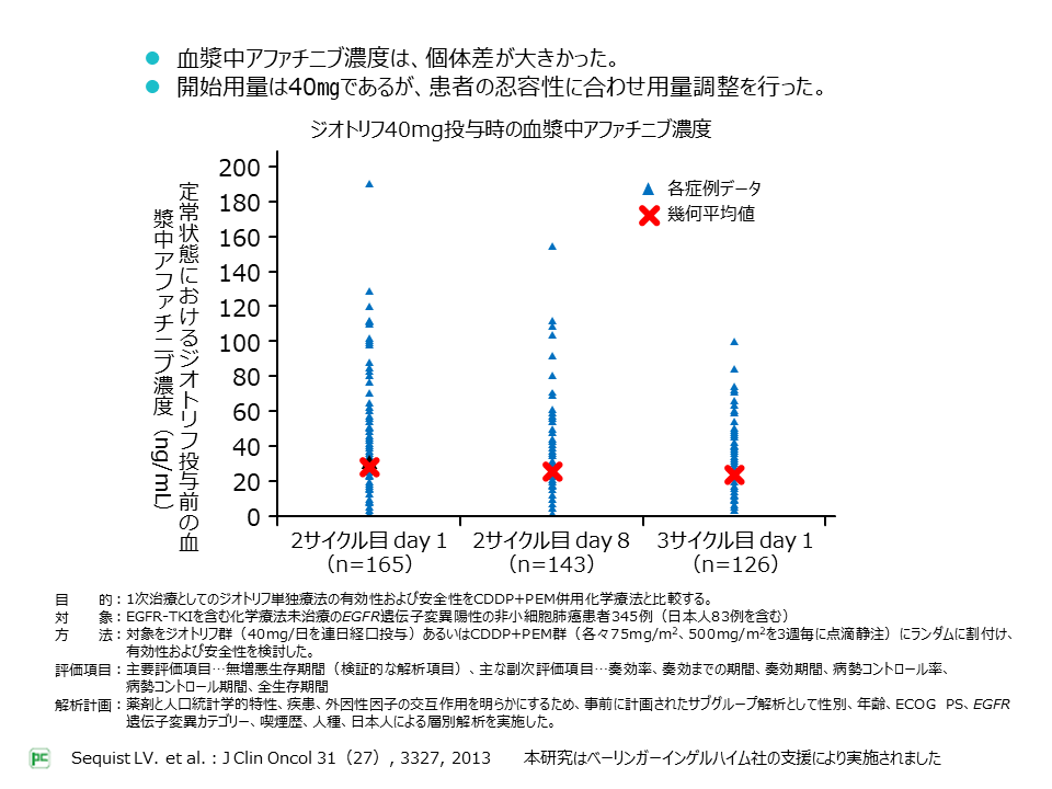 1次治療としてジオトリフの有効性および安全性を検討したLUX-Lung3における薬物動態の結果をご紹介します。