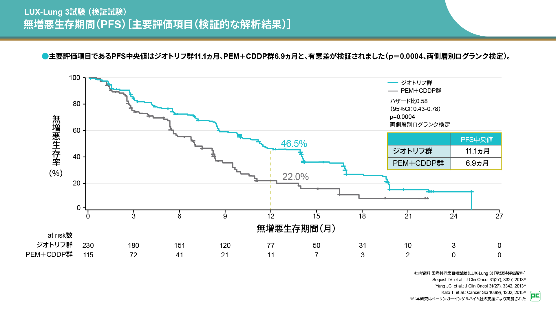 ここで例として、ジオトリフのLUX-Lung 3試験3-6)の結果についてご紹介します。