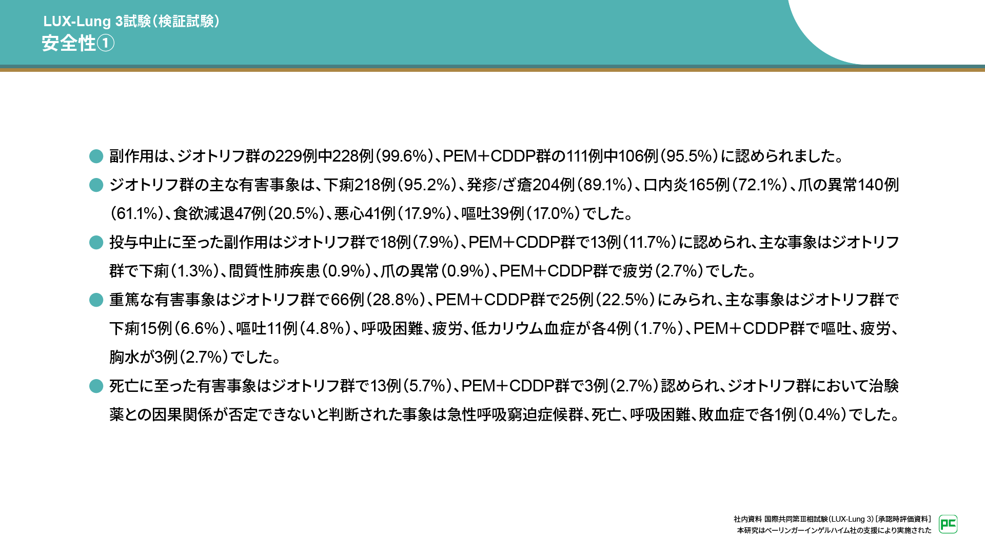 - 社内資料 国際共同第Ⅲ相試験(LUX-Lung 3)[承認時評価資料]