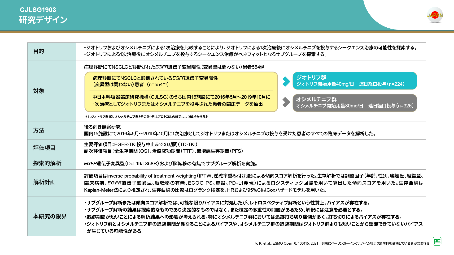 - Ito K. et al.: ESMO Open 6, 100115, 2021※※