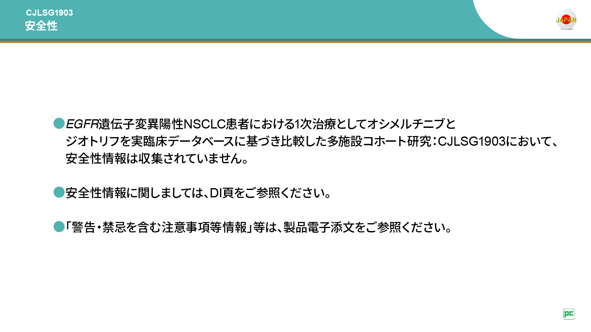 たとえば後治療をどのくらいしっかりと行うかは、国によって異なる部分だと思います。ですから、日本人のデータというよりは、日本でのデータが重要なのではないでしょうか。