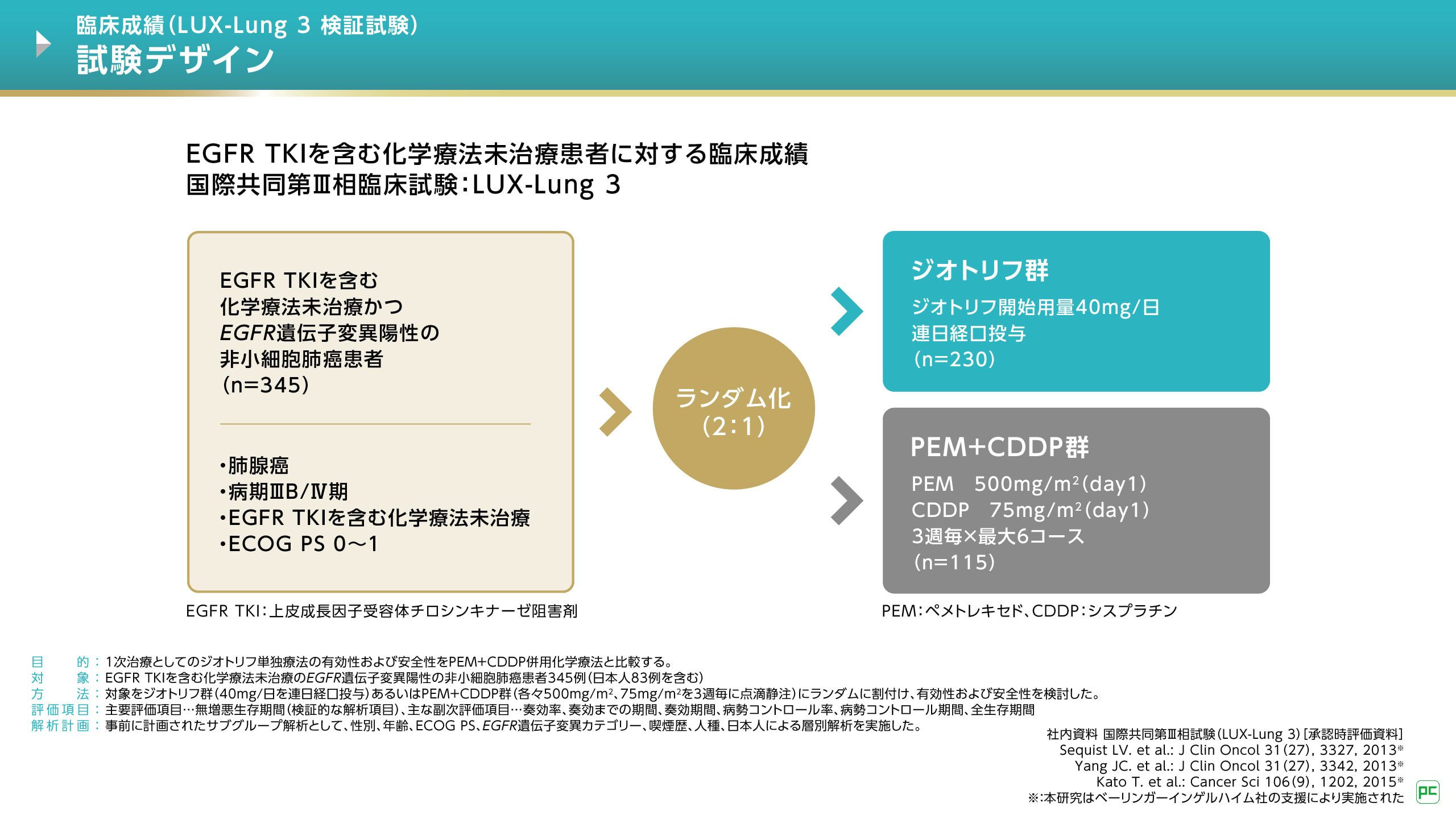 はじめに、ジオトリフの承認の根拠となったLUX-Lung 3 検証試験についてご紹介します。