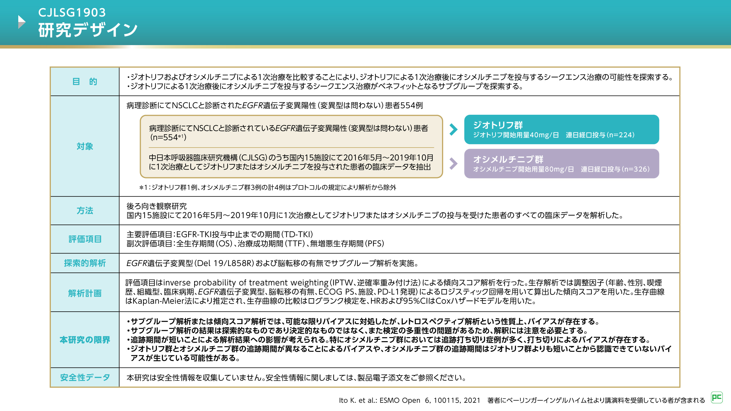 CJLSG1903は、アファチニブとオシメルチニブによる1次治療を比較した後ろ向き観察研究です(図1)。