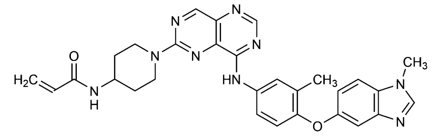 化学名:N-[1-(8-{3-Methyl-4-[(1-methyl-1H-1,3-benzimidazol-5-yl)oxy]anilino}pyrimido[5,4-d]pyrimidin-2-yl)piperidin-4-yl]prop-2-enamide