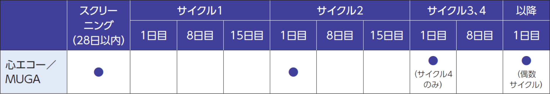なお、Grade 3⼜は4の駆出率減少が発現し、休薬後4週間以内に正常範囲⼜はベースラインから5ポイント以内に回復しなかった場合、再開後にベースラインから10ポイント以上低下した場合は、本剤の投与を中⽌してください。