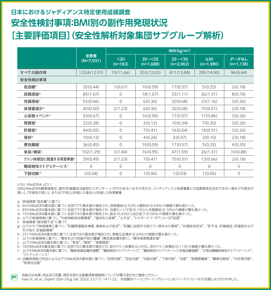 ジャディアンスでは、2型糖尿病の治療を目的として初めてジャディアンスを服用する方を対象に、特定使用成績調査が実施されました。