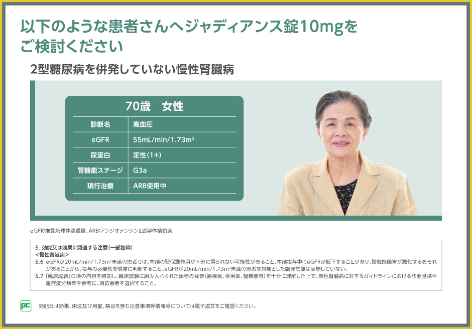 2型糖尿病を併発していない慢性腎臓病※2の患者さんの治療にジャディアンス錠10mgの処方をご検討ください。