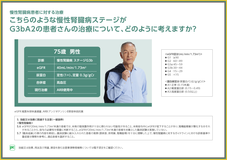 慢性腎臓病ステージがG3bA2の患者さんの治療について、どのように考えますか?