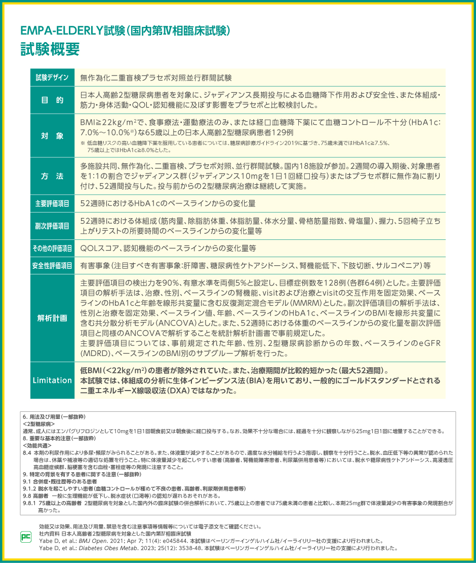 ジャディアンスのエビデンス① 日本人高齢者2型糖尿病を対象としたEMPA-ELDERLY試験