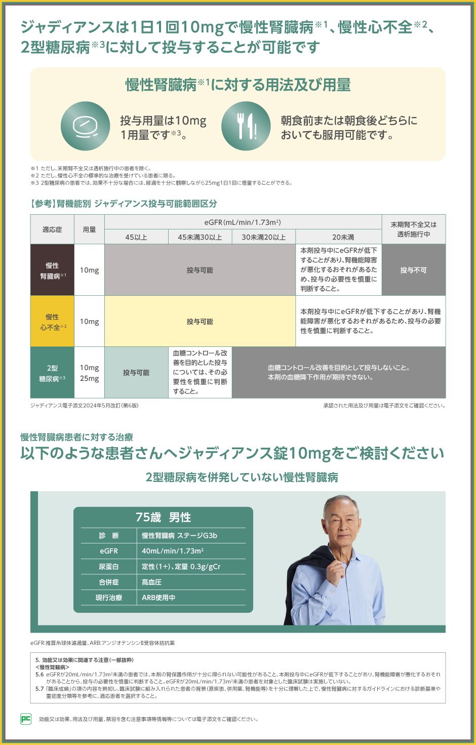 慢性腎臓病治療において心不全管理を考慮することの重要性と、ジャディアンスの有効性についてご紹介します。