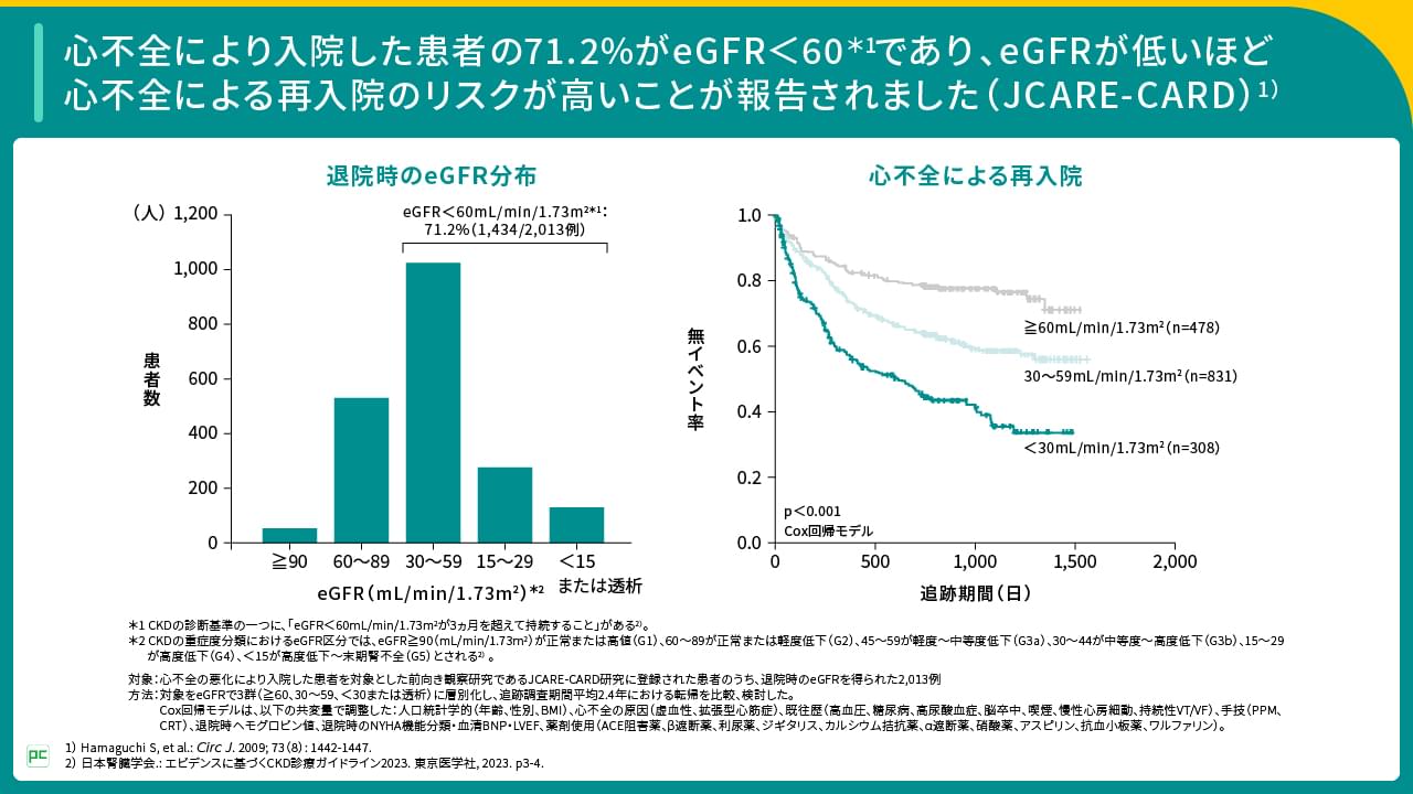 実際に、臨床の場においても、慢性心不全患者がCKDを有する場合には、水分管理の難しさなどから再入院を繰り返す症例をよく経験します。