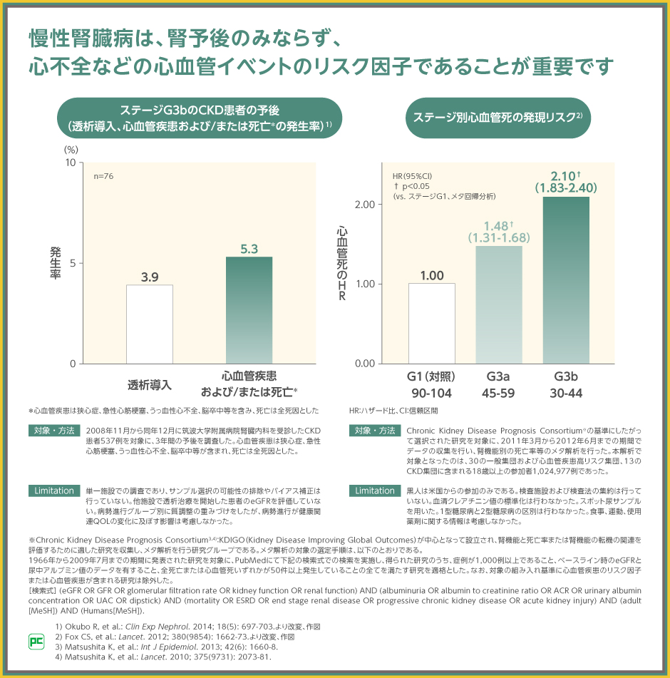 また、別の調査では、ステージG3bの心血管死の発現リスクはステージG1の2.10倍に上ると報告されました。