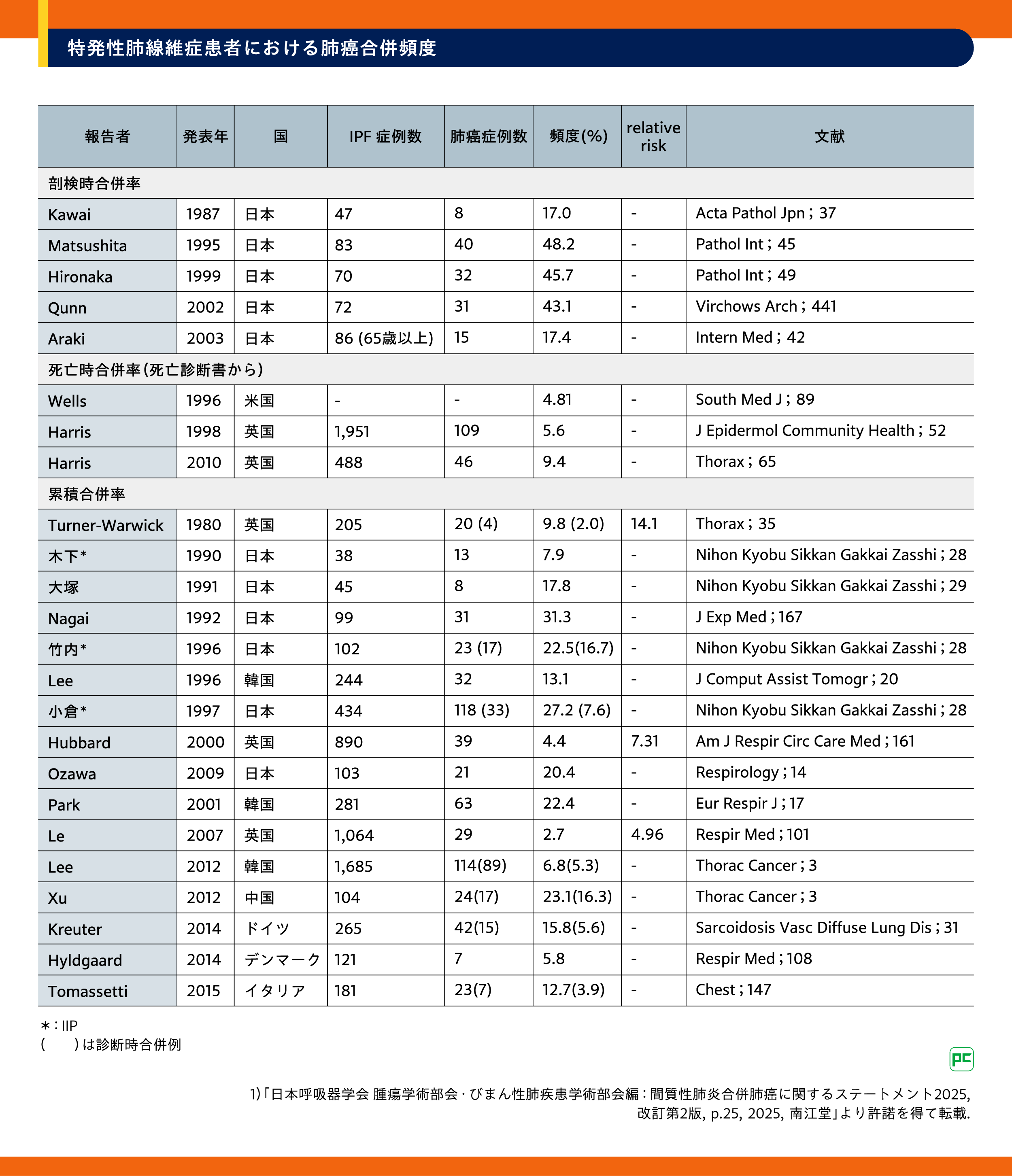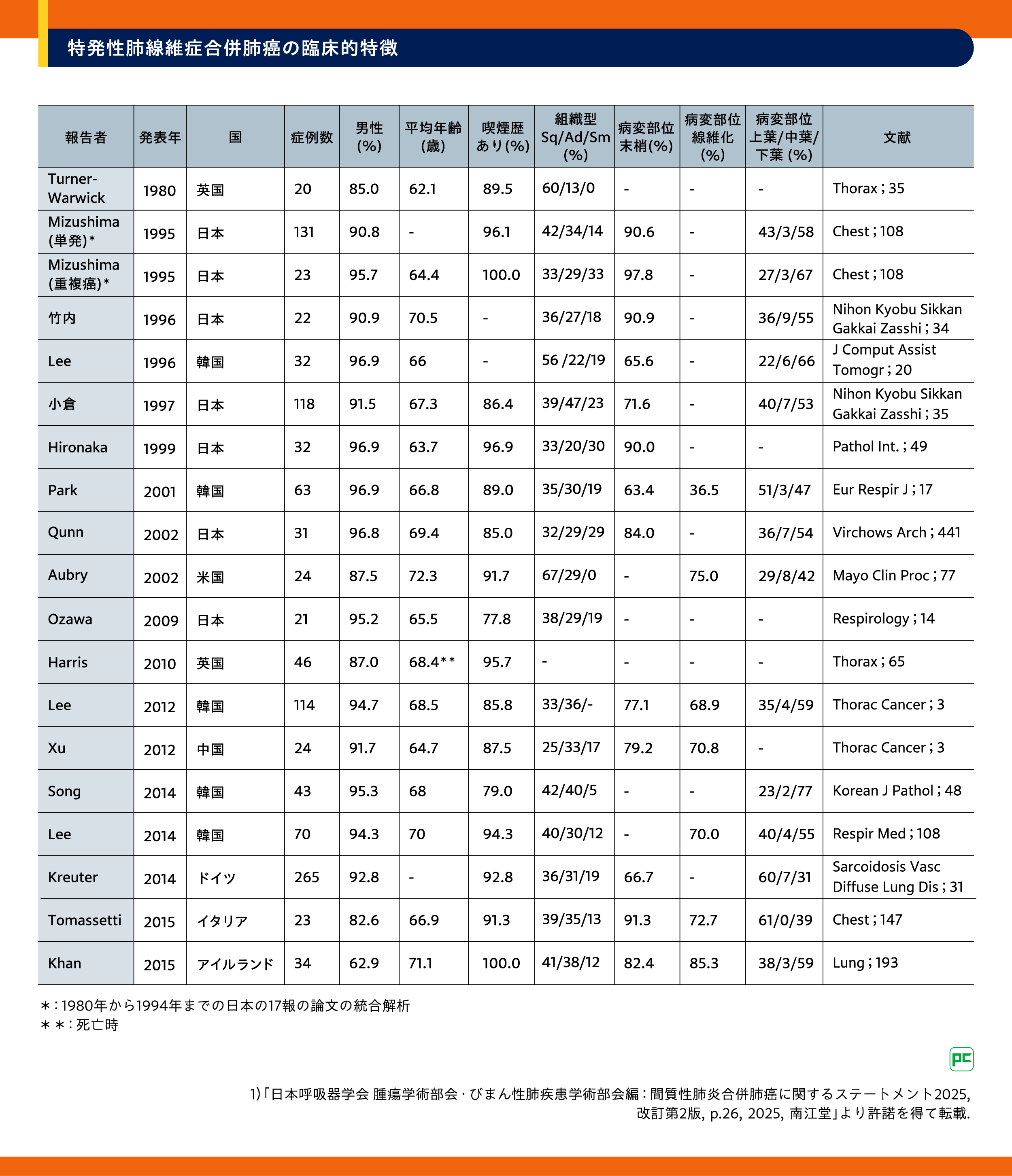 ◆間質性肺炎合併肺癌の臨床像【ステートメント2025 第Ⅲ章-1.臨床像(疫学,血液検査含む)】
