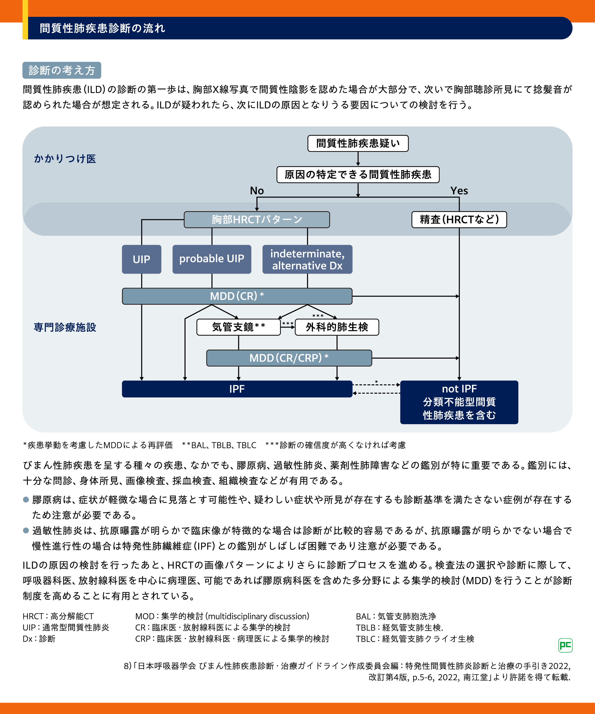 - 日本呼吸器学会 びまん性肺疾患診断・治療ガイドライン作成委員会編.特発性間質性肺炎 診断と治療の手引き2022. 改訂第4版. 東京:南江堂;2022.