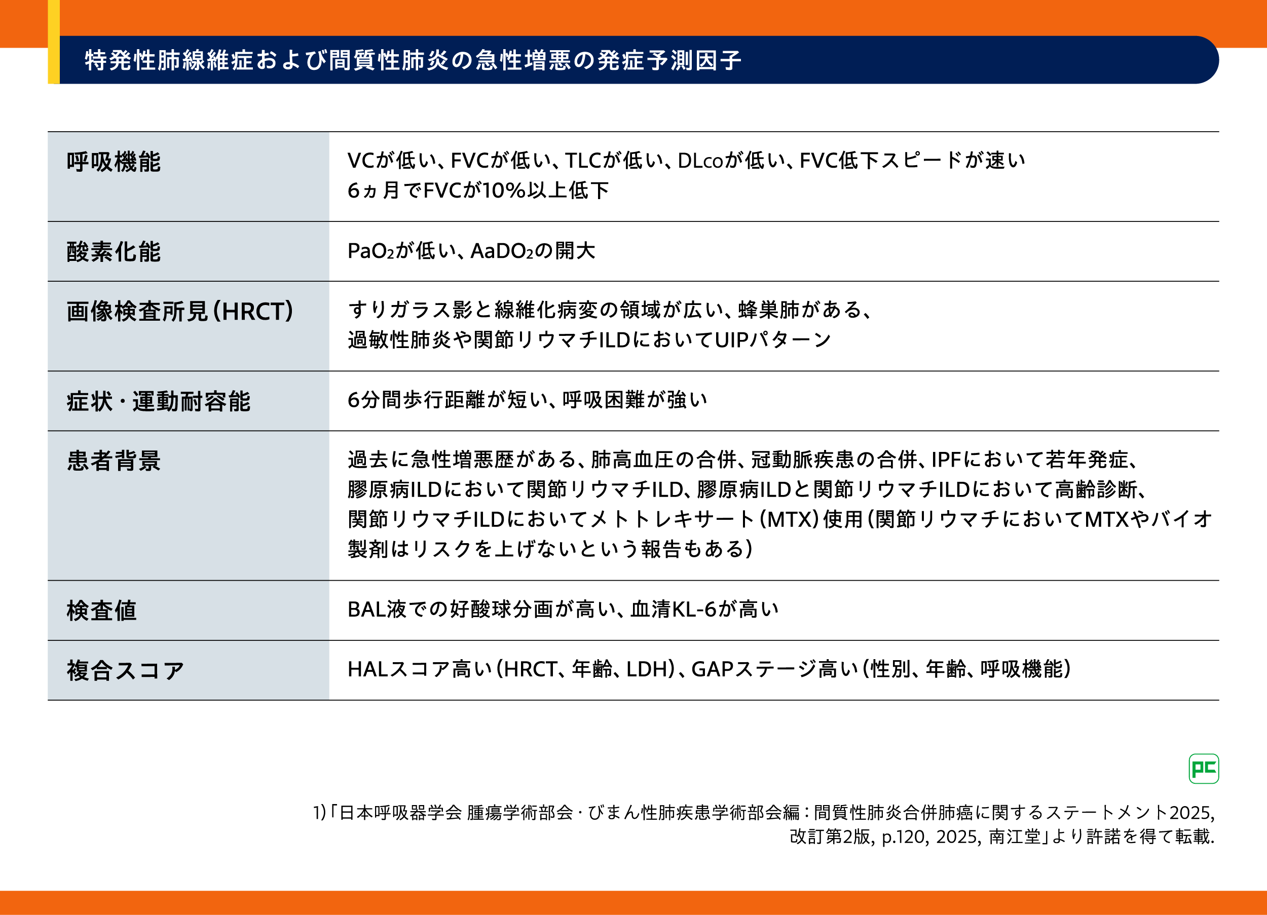 ◆間質性肺炎合併肺癌急性増悪の診断と増悪予測因子【ステートメント2025 第Ⅴ章-2.間質性肺炎急性増悪の診断と増悪予測因子】