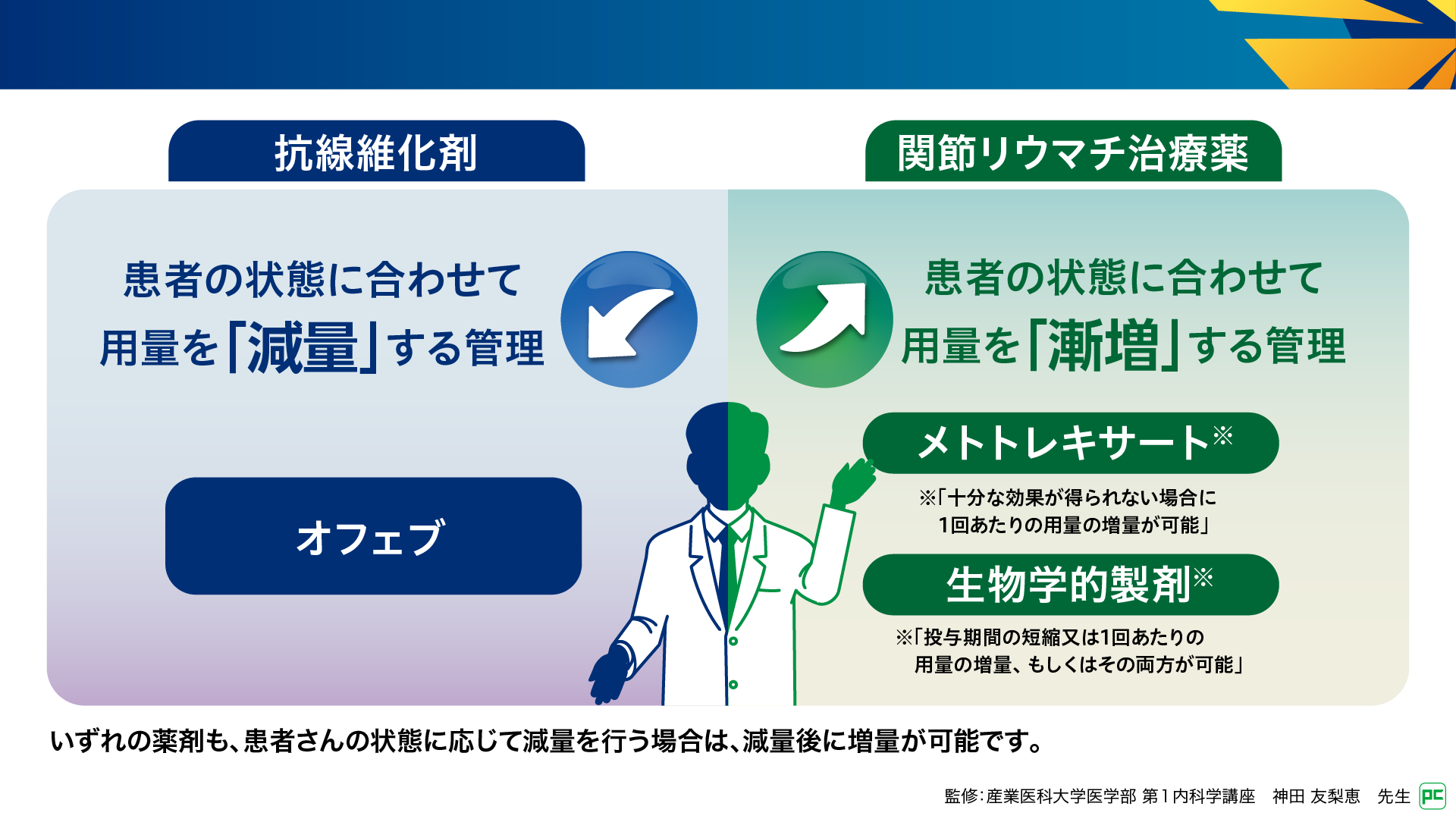 オフェブと抗リウマチ薬・生物学的製剤の用量管理の違い