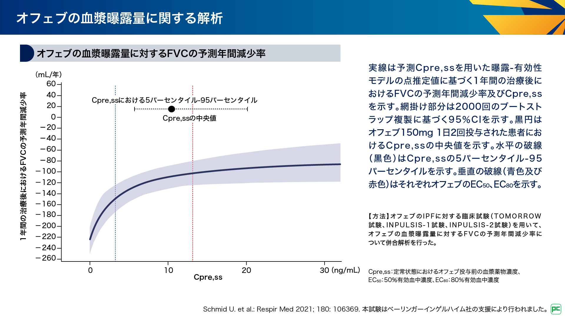 オフェブの血漿曝露量とFVC年間減少率の相関に関する解析