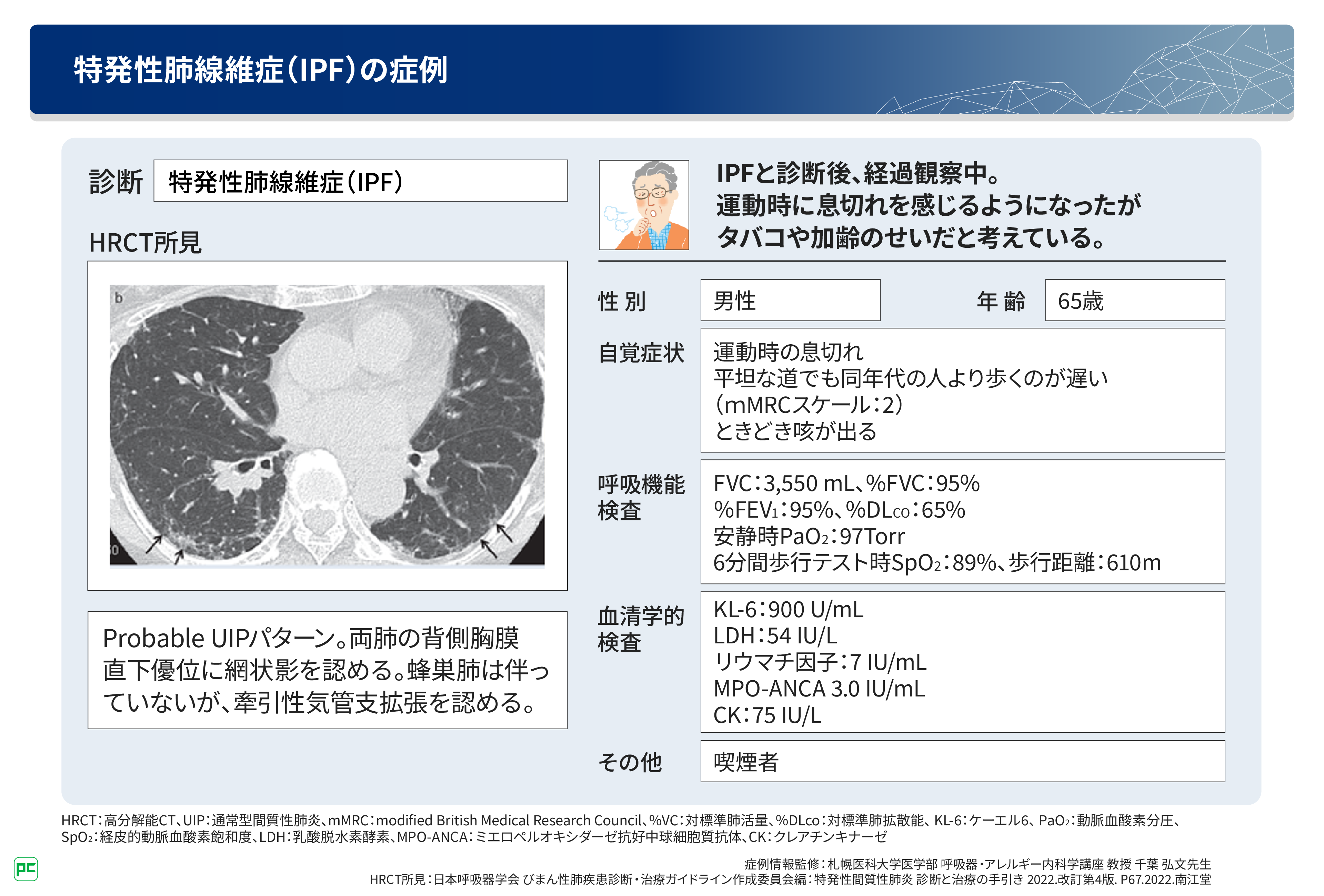 ではここから、図4のIPF患者さんを例に、実際の臨床調査個人票の記載方法をご紹介します。