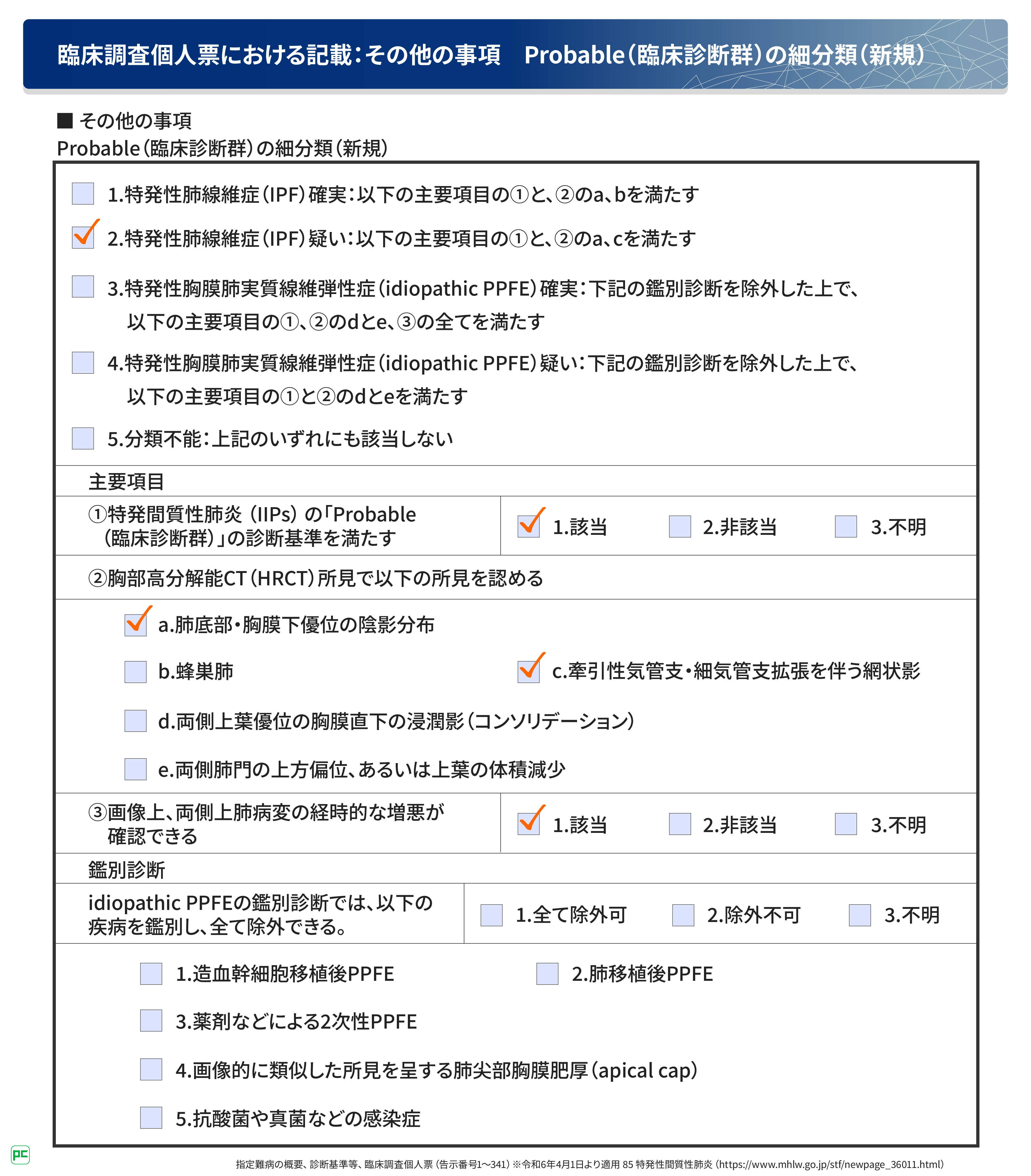 特発性肺線維症(IPF)における臨床調査個人票の記入方法(静止画)