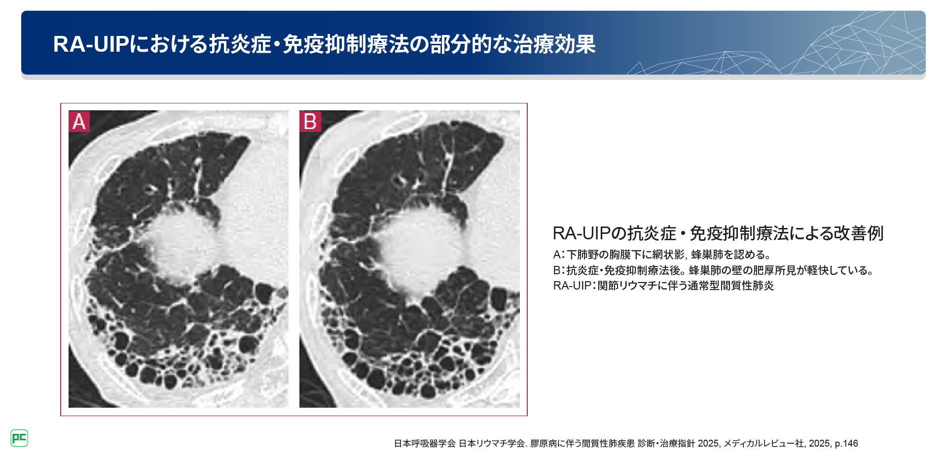 一方、CTD-ILDに対する抗炎症・免疫抑制療法の治療効果は、部分的である可能性があります。