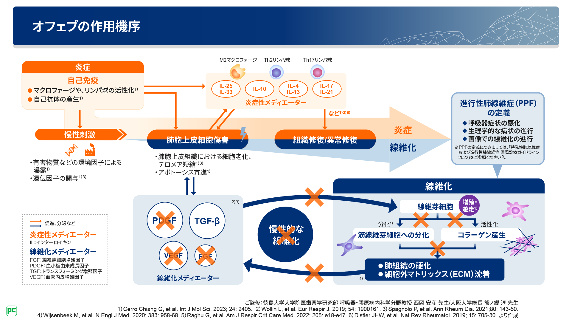 SSc-ILDやPF-ILDの患者さんの場合、治療選択肢のひとつとして抗線維化剤であるオフェブを検討することができます。