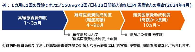 図4 重症度Ⅲ〜Ⅳ度のIPF患者さんへのオフェブ処方の場合に活用できる公的支援制度のイメージ