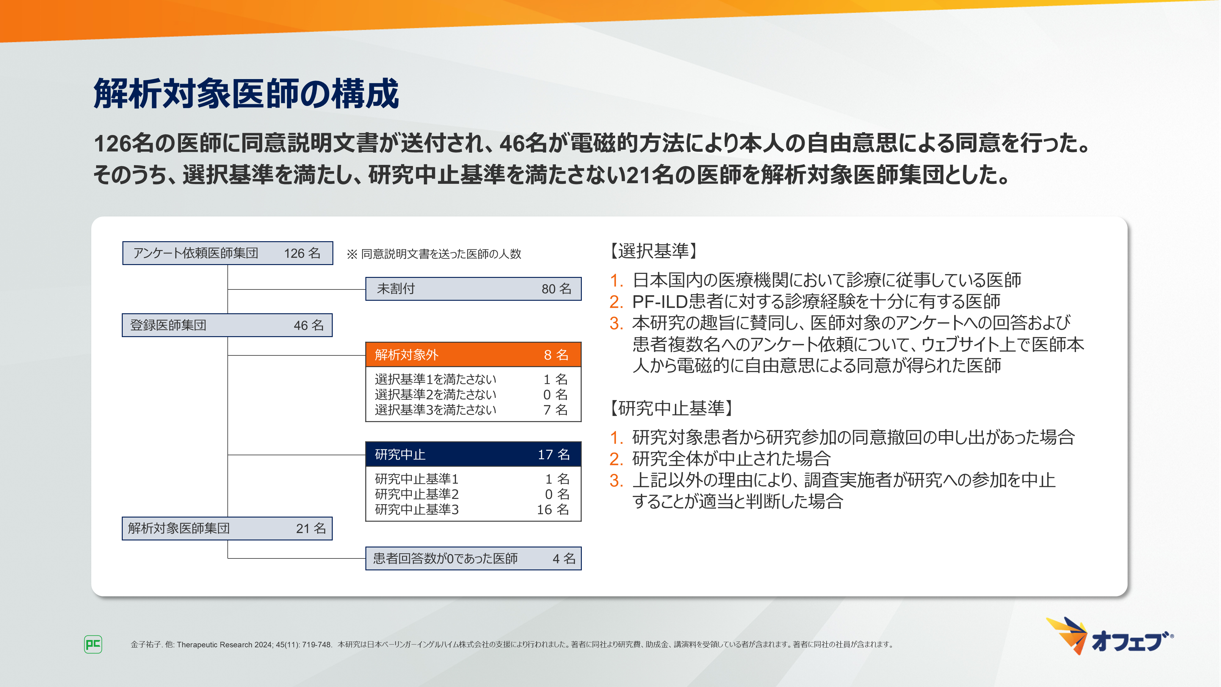 調査対象となった医師・患者の選択基準はお示しする通りです(図4)。