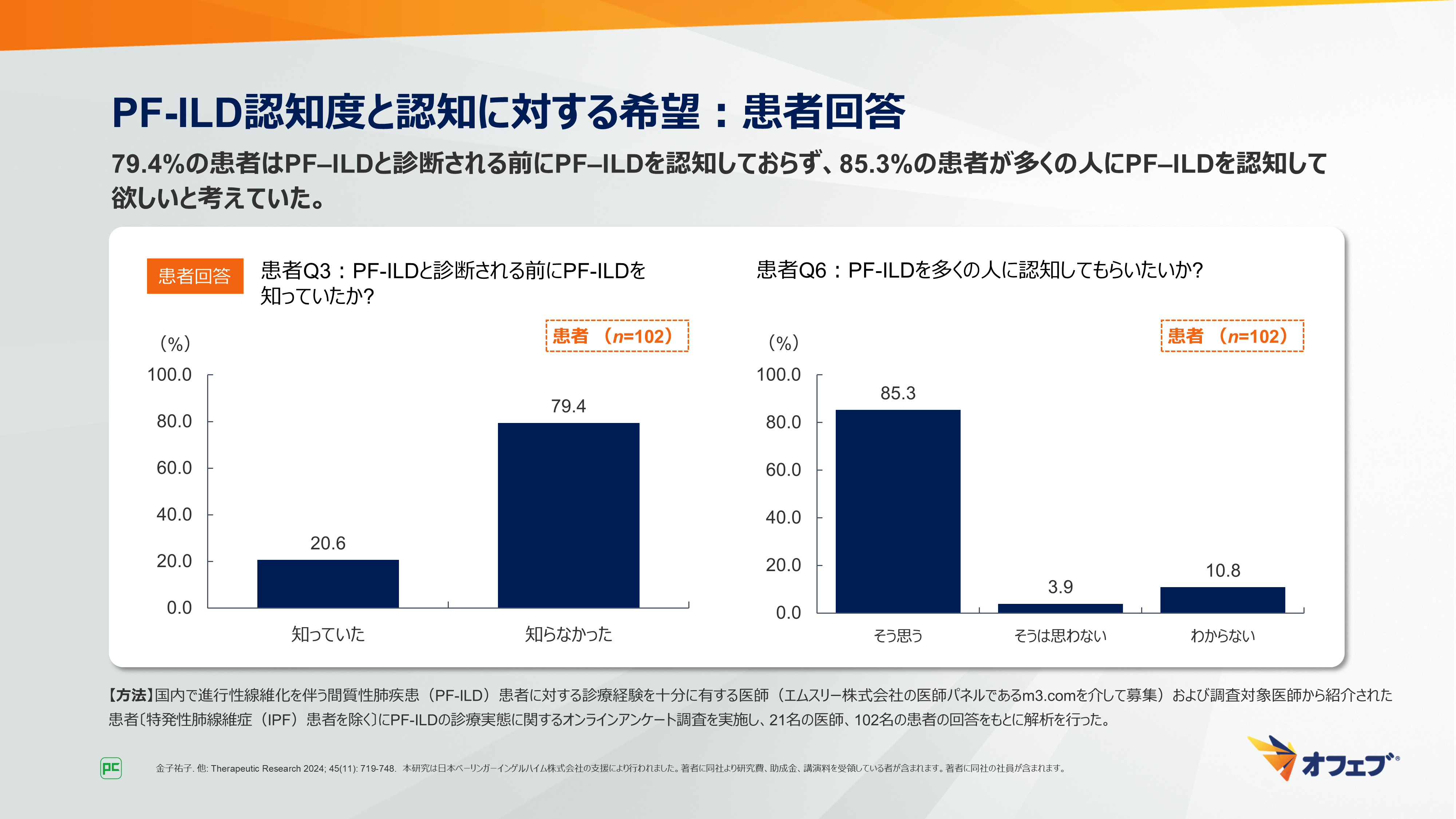 本コンテンツでは、PF-ILDの診療実態に関して、国内の医師および患者に対してアンケート調査を行った結果1)をご紹介します。