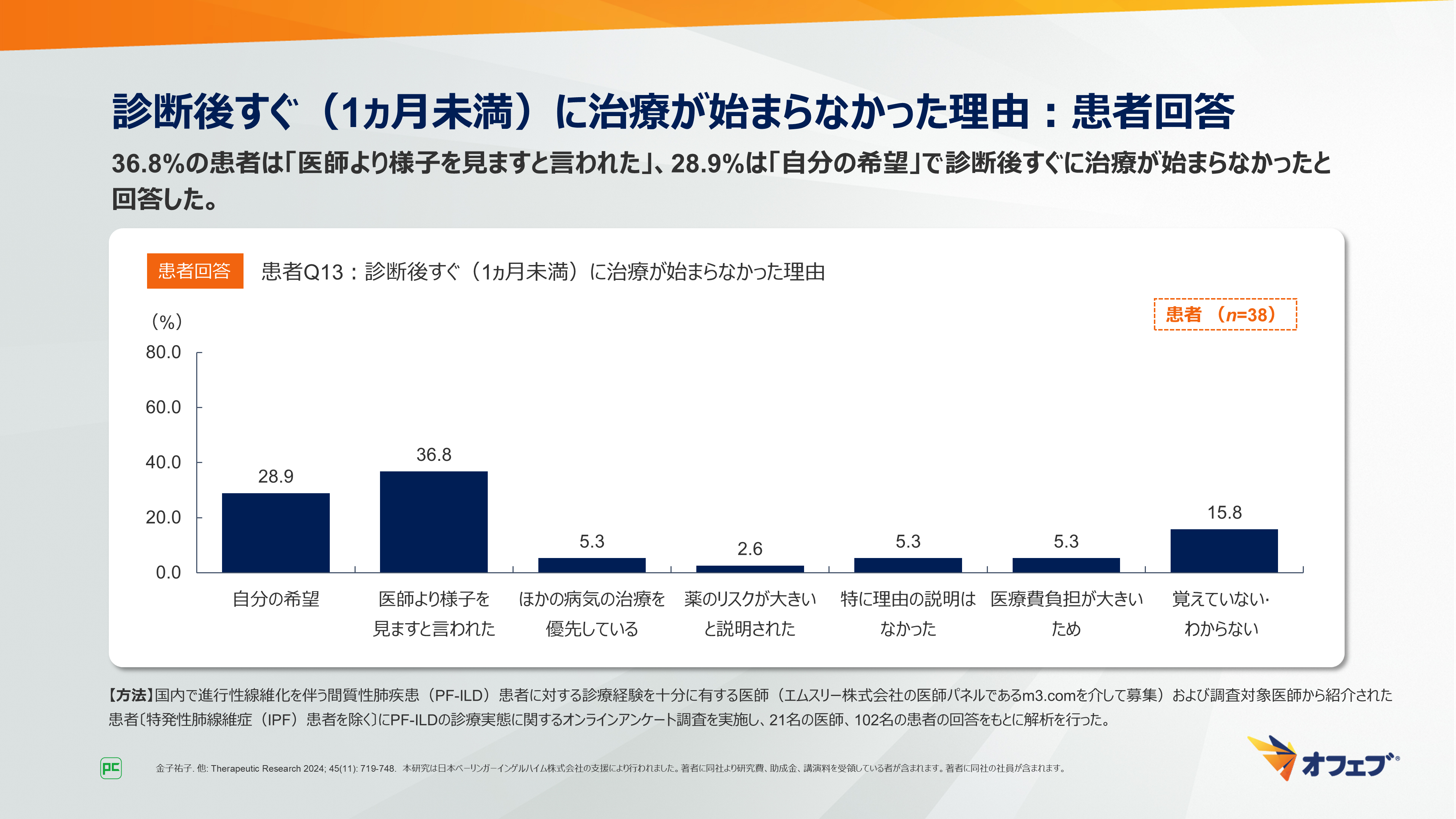 72.5%の患者が、アンケートを依頼した医師への受診後3ヵ月未満でPF‒ILDと確定診断されました(図13)。