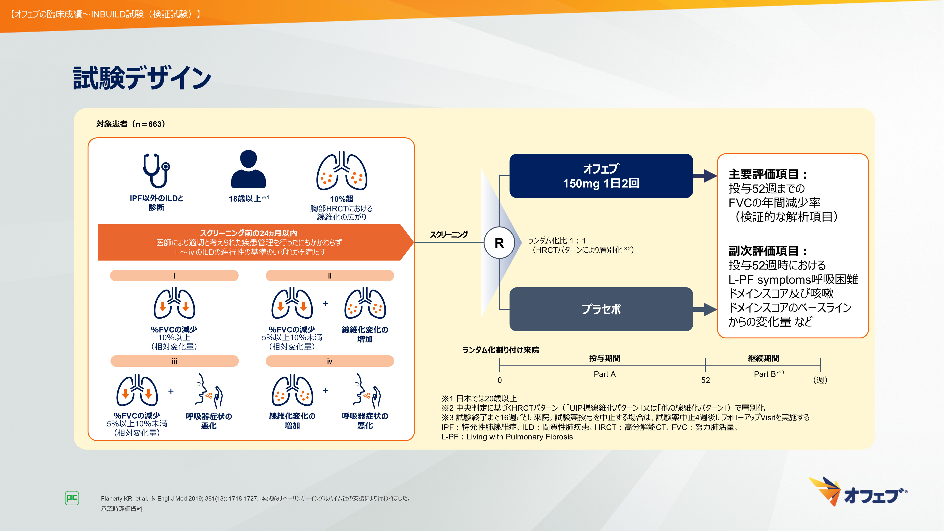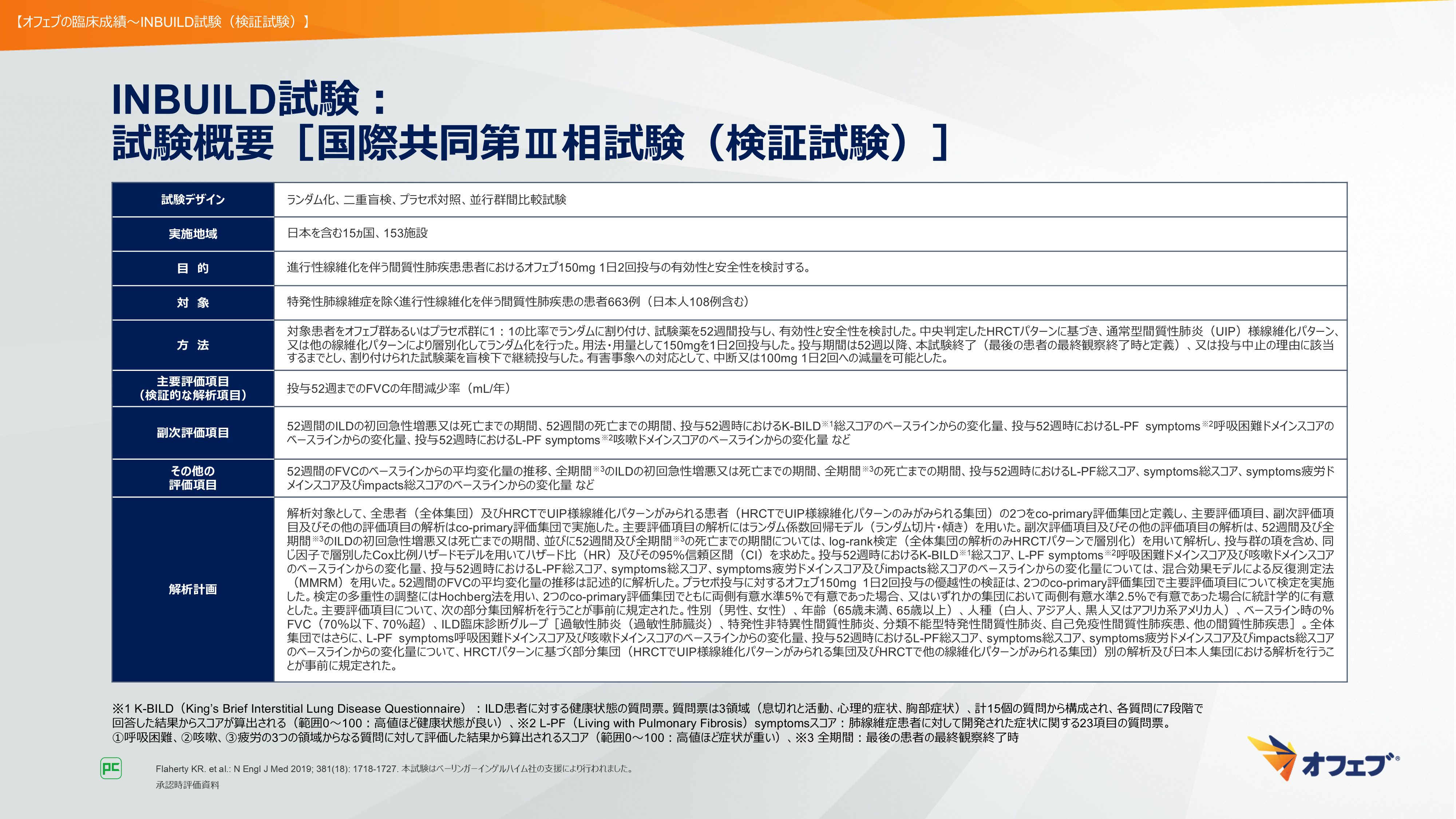 ここで、オフェブの国際共同第Ⅲ相試験INBUILD試験1,2)についてご紹介します(図41)。