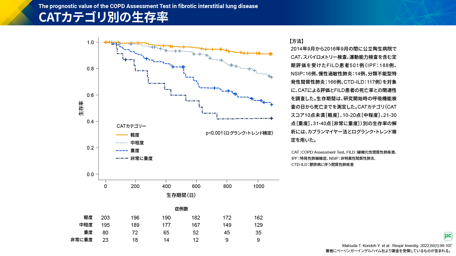 また、CATスコアは、FILD患者さんの予後予測に活用することも可能であると考えています。