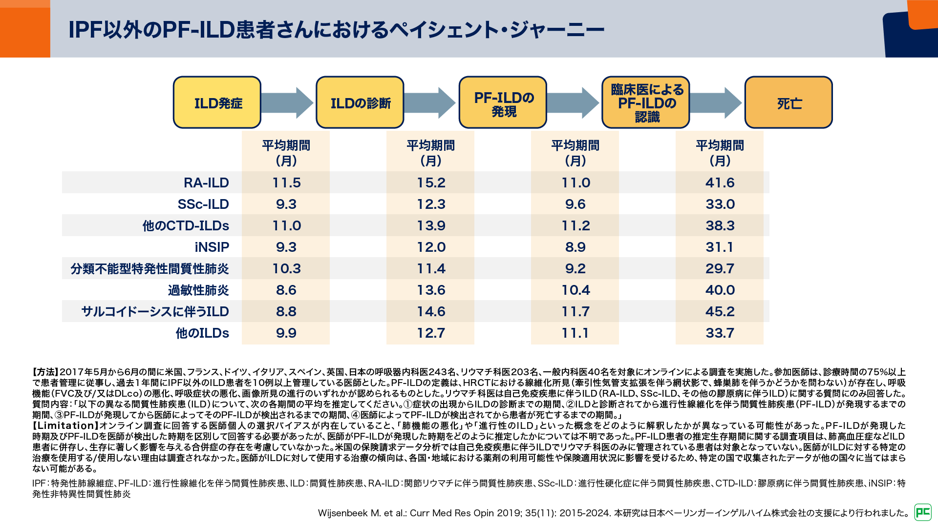 - PF-ILDの診断までに時間がかかりすぎ、治療介入が遅れていることが最大の課題