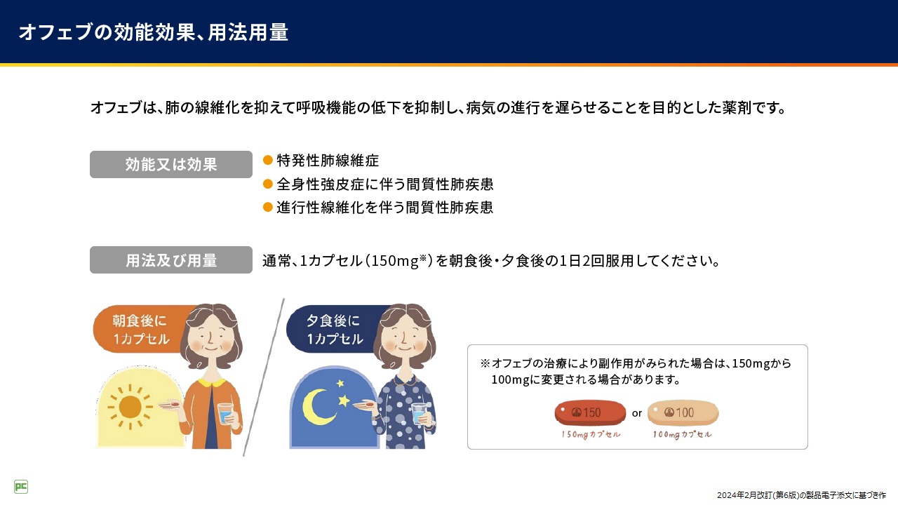 Q 間質性肺疾患の治療選択肢のひとつである抗線維化剤オフェブによる治療を進めるうえで、看護師はどのようなサポートができるでしょうか?
