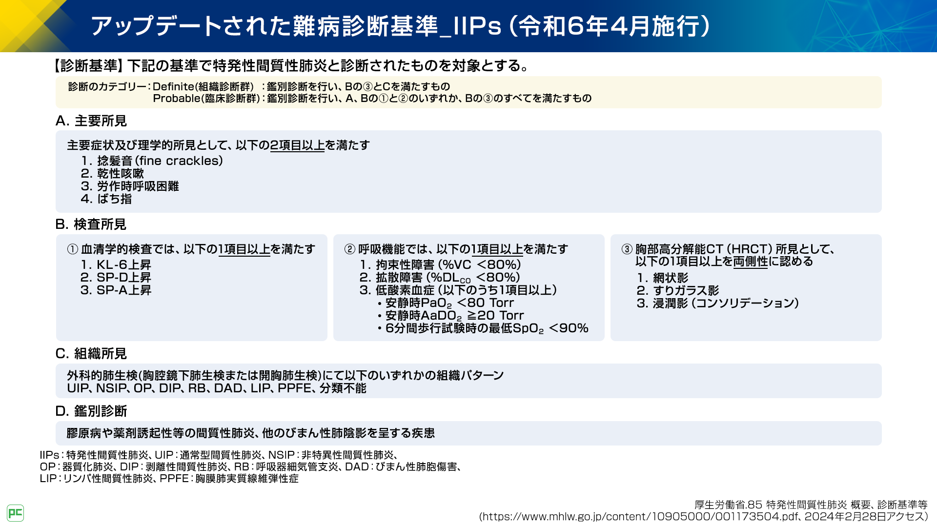 今回は、IIPsの指定難病診断基準等のアップデートについて紹介しました。