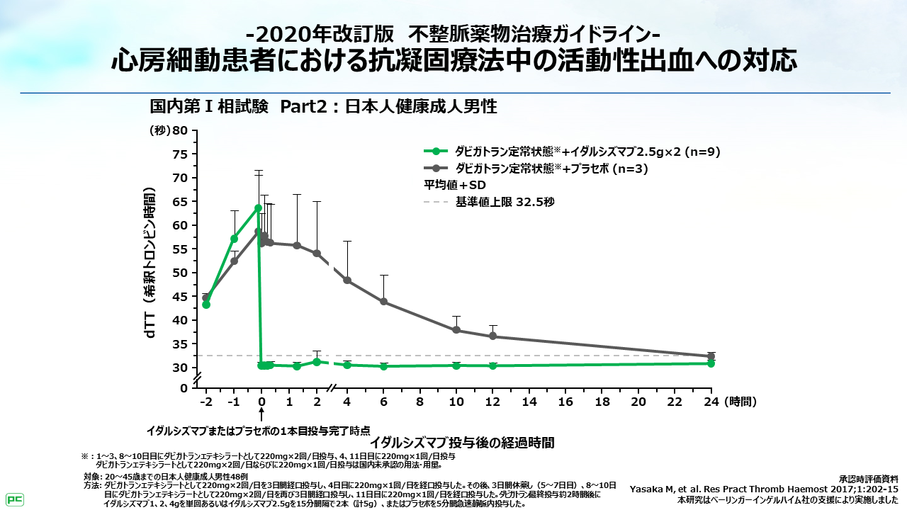 本ガイドラインでは、プリズバインドの中和効果について、「投与後1分以内にダビガトランの抗凝固作用は迅速かつ完全に中和され、持続的に約24時間効果が持続する」と記載されています。