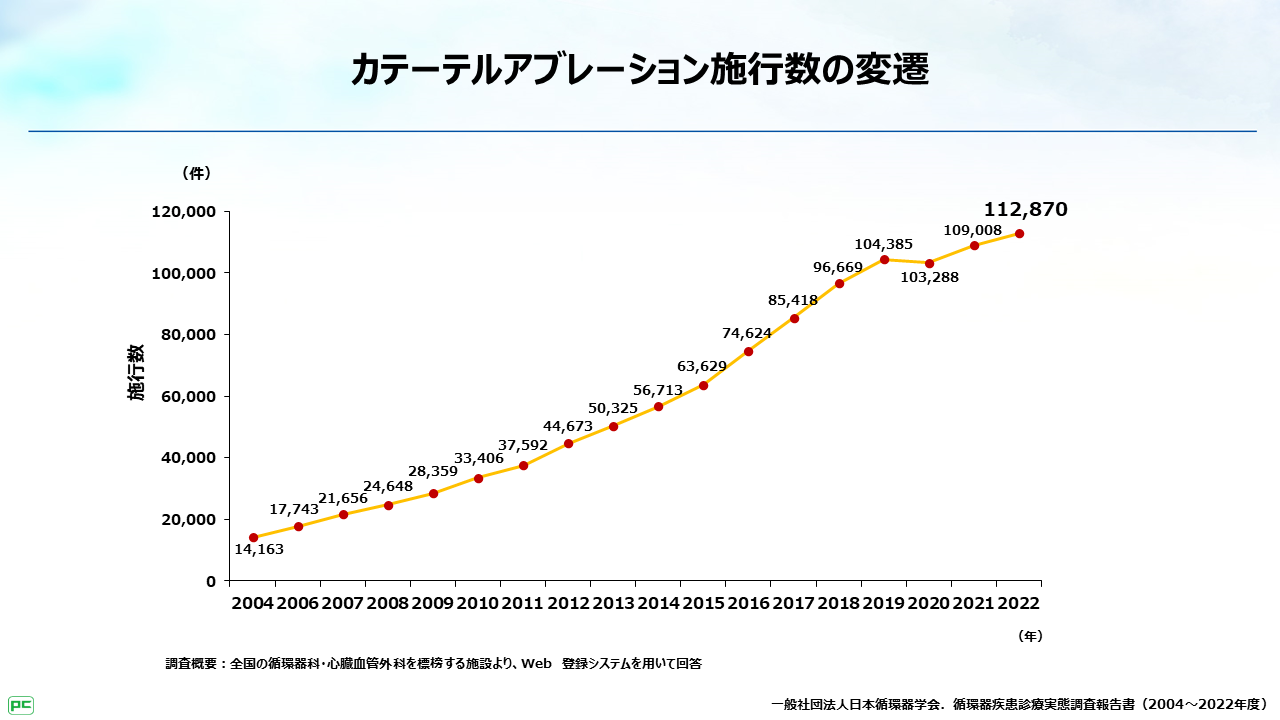 近年、本邦でのアブレーション施行数は増加しており、今回のような自覚症状があるAF患者さんに対する治療方針を考える際には、アブレーションという選択肢も考えます。