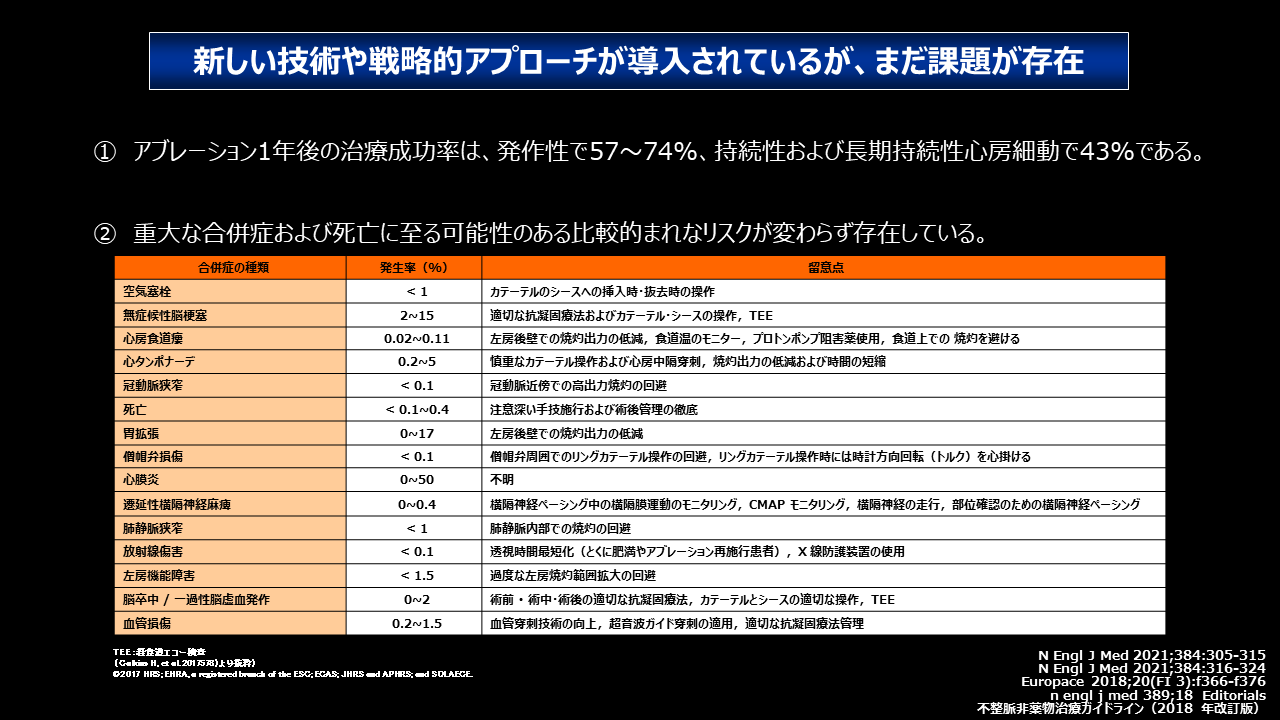 - アブレーションには新しい技術や戦略的アプローチが導入されてきているものの、依然として有効性・安全性の向上余地が残されている