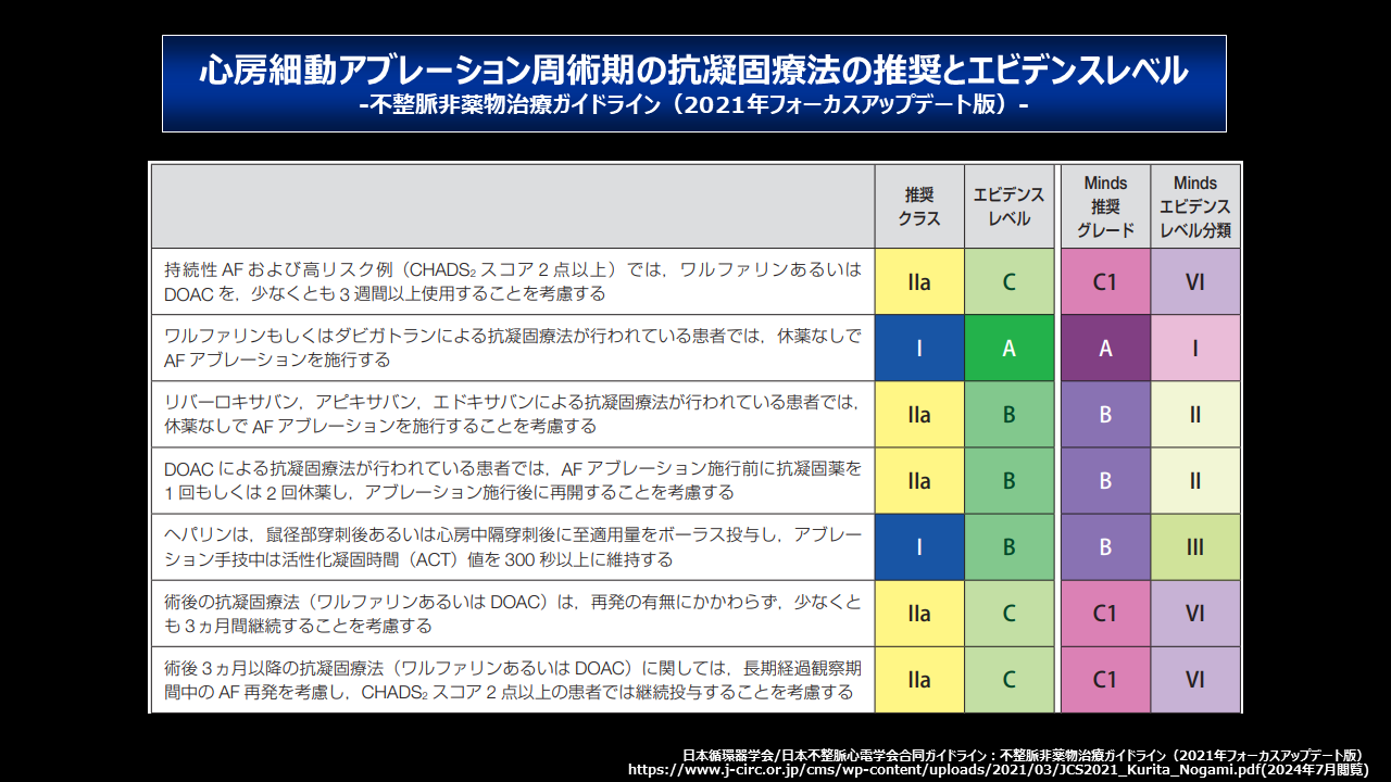 アブレーション周術期の抗凝固療法