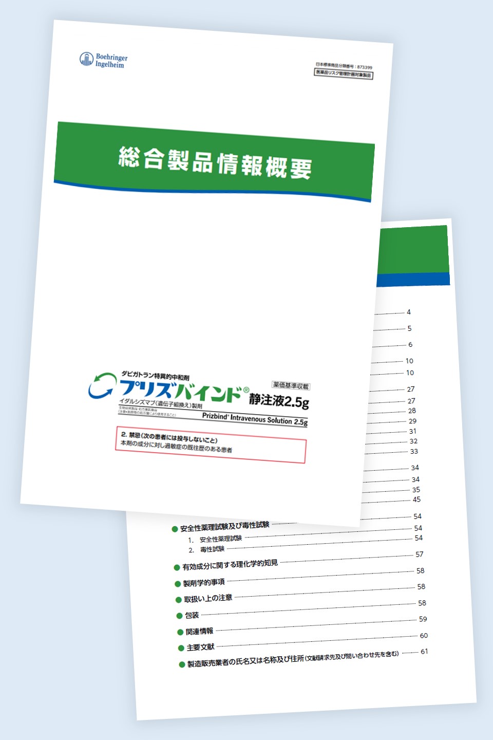 ベーリンガーインゲルハイム社が開発したダビガトラン特異的中和剤「プリズバインド®静注液2.5g(一般名:イダルシズマブ(遺伝子組換え))」の総合製品情報概要です。