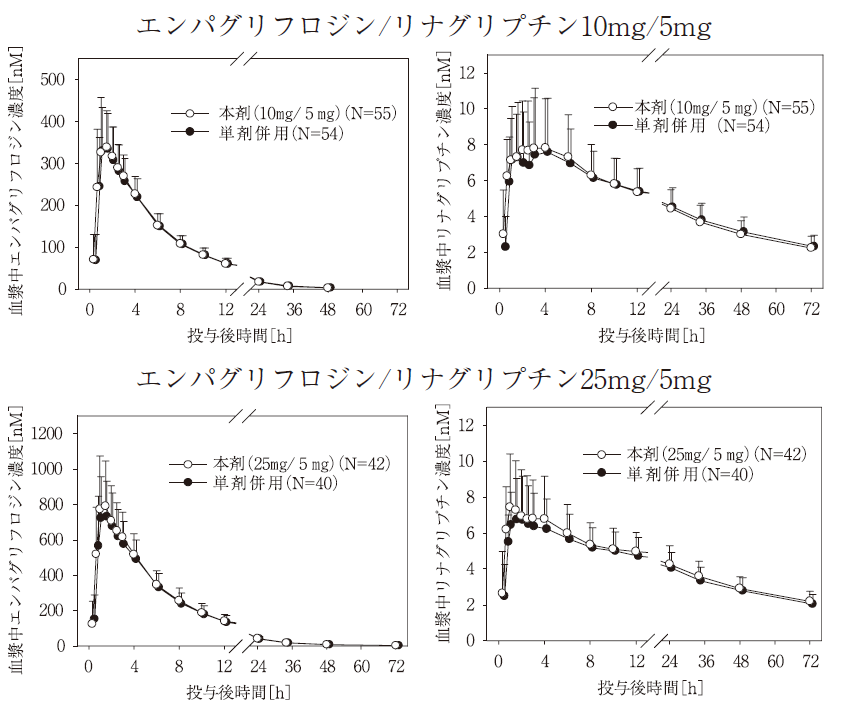 - 社内資料:エンパグリフロジン/リナグリプチン配合剤の生物学的同等性試験(2018年9月21日承認、CTD 2.7.1.4、2.7.6.1)