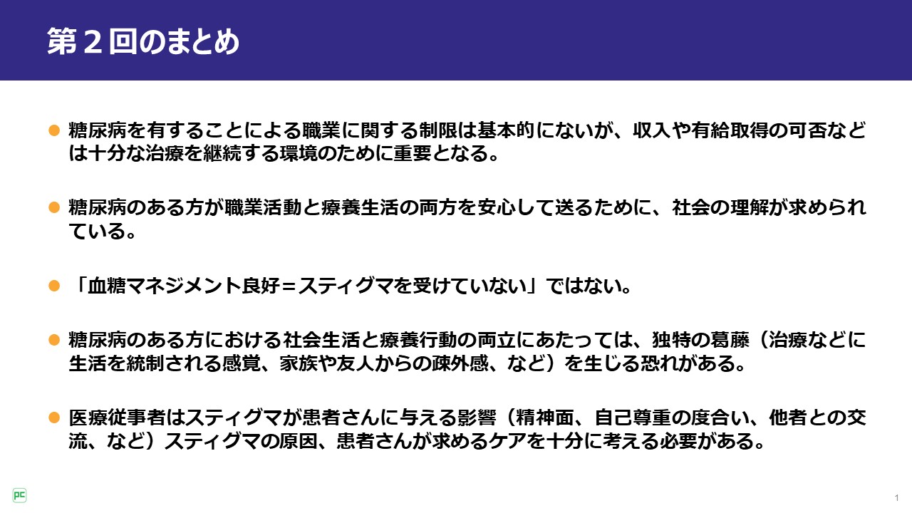 スティグマを受けてつらい気持ちを抱えていても、それでもなお本人の努力により治療に取り組めばHbA1cはマネジメントできます。逆に、血糖マネジメントが良好であるからといって、スティグマを受けていないだろうと考えてしまうことのほうが問題としては大きいのではないかと感じます。