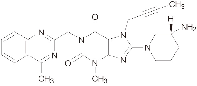 化学名:8-[(3R)-3-aminopiperidin-1-yl]-7-(but-2-yn-1-yl)-3-methyl-1-[(4-methylquinazolin-2-yl)methyl]-3,7-dihydro-1H-purine-2,6-dione